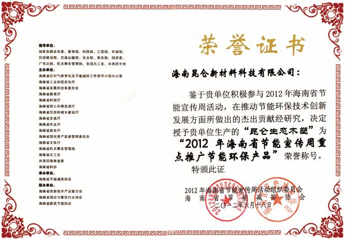 海南节能宣传环保证书